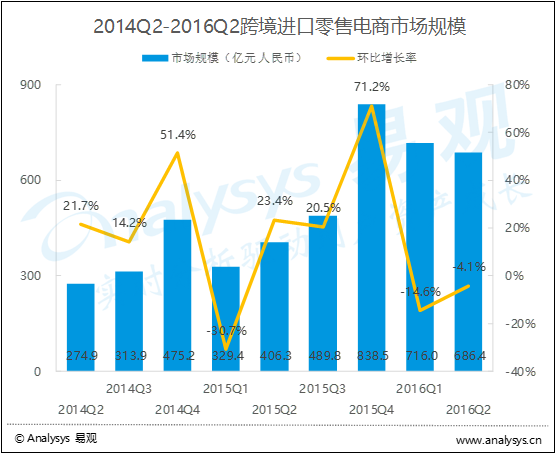 • 2016年第2季度中國(guó)跨境進(jìn)口零售電商市場(chǎng)規(guī)模統(tǒng)計(jì)分析
