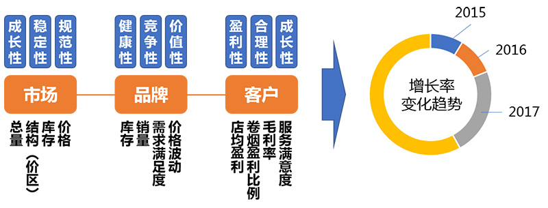 建立系統(tǒng)化的卷煙市場監(jiān)測分析體系,從市場總量、品牌和客戶等三個維度全面分析全國范圍或區(qū)域卷煙市場總體表現(xiàn)及變化趨勢,并在監(jiān)測數(shù)據(jù)積累的基礎(chǔ)上,進(jìn)行關(guān)于零售價格變化與市場表現(xiàn)的關(guān)系研究、社會存銷比預(yù)警研究等深度挖掘。