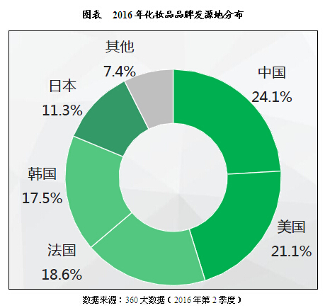 化妝品品牌發(fā)源地集中度高,中美法和日韓五個國家的品牌檢索量占比超90.0%