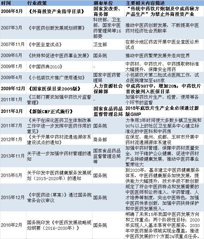 2006-2016年中藥飲片行業(yè)主要政策匯總