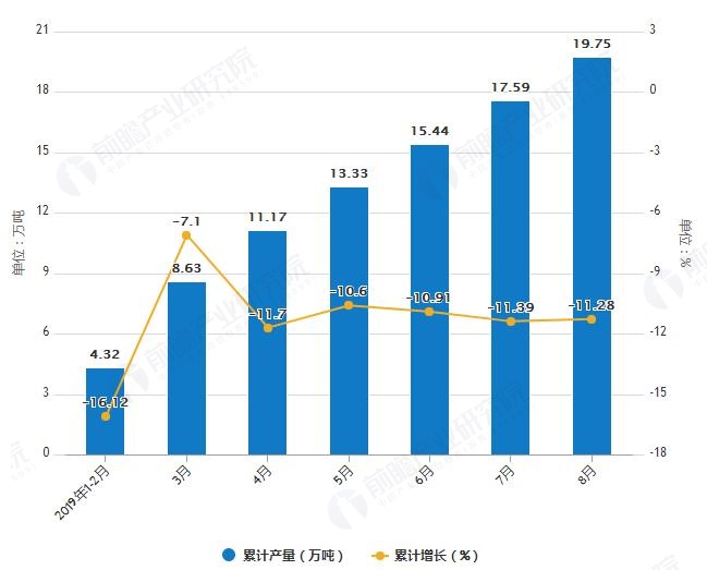 2019年1-8月湖南省合成洗滌劑產(chǎn)量及增長情況